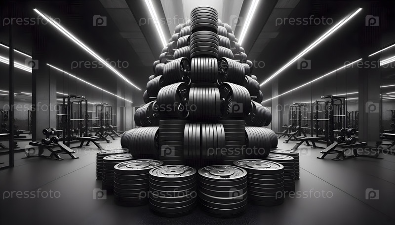 Профессиональный интерьер тренажерного зала с оборудованием для тренировок, Ai created image