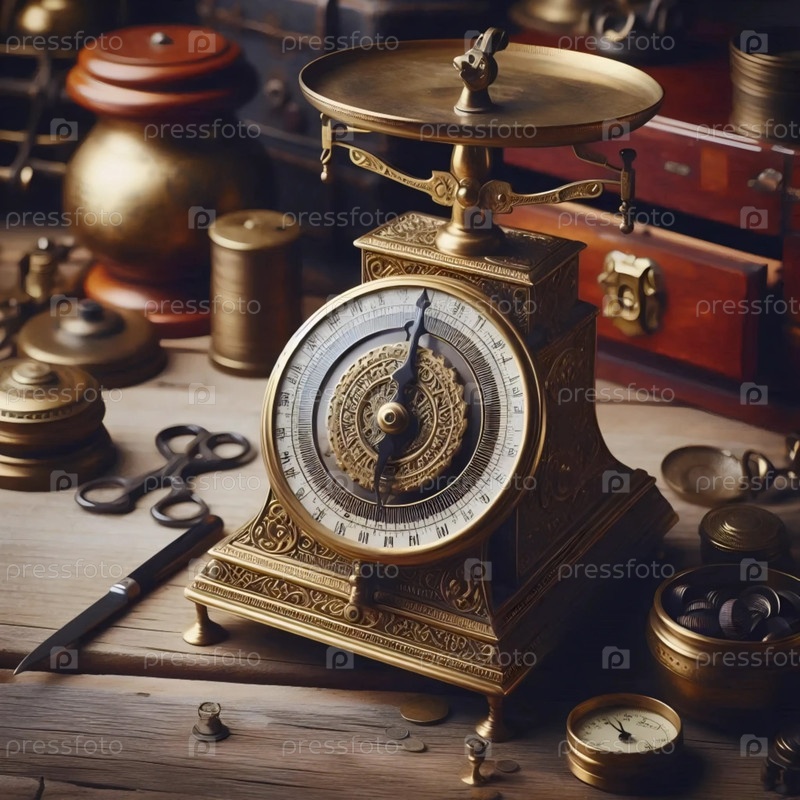Vintage grocers scale, Ai generated image Продовольственные магазины Ветхого Завета в масштабе