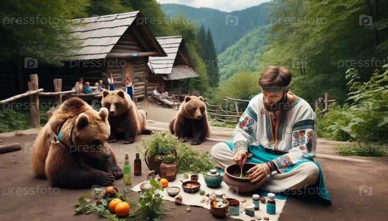Знаменитый славянский медведь The Slavic Bear Healers, созданное искусственным интеллектом изображение