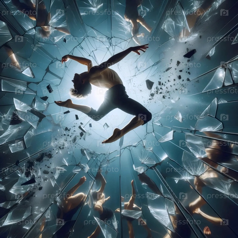 Балерина коллапсирует от разбитых зеркальных отражений, Ai generated image