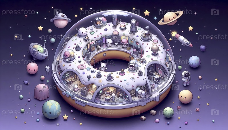 Подробная иллюстрация чиби крошечной космической станции, Ai generated image