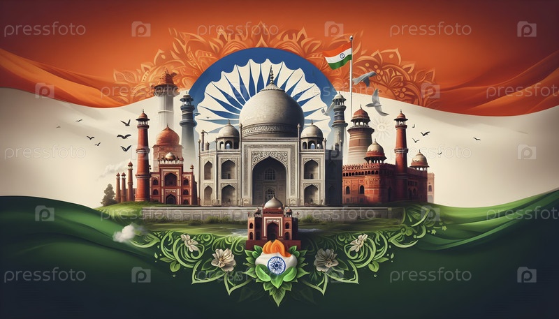 Индийский флаг, реалистичный эффект движения, Ai created image