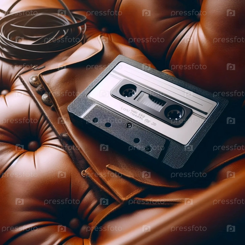 Винтажный кассетный проигрыватель на кожаном диване, Ai generated image