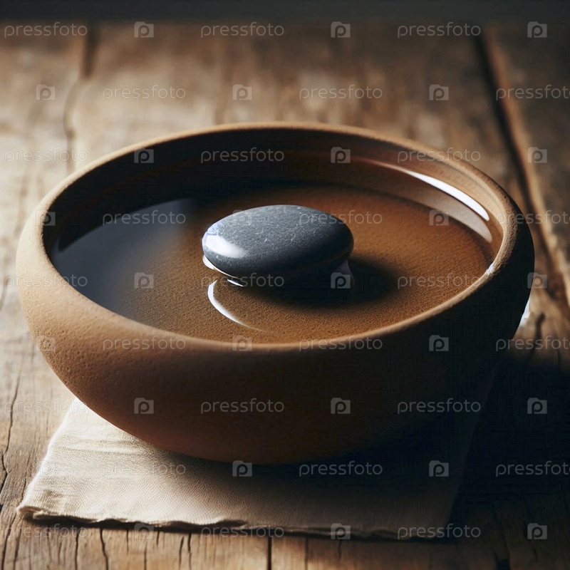 Гладкий камень в маленькой глиняной чашке с водой, Ai generated image