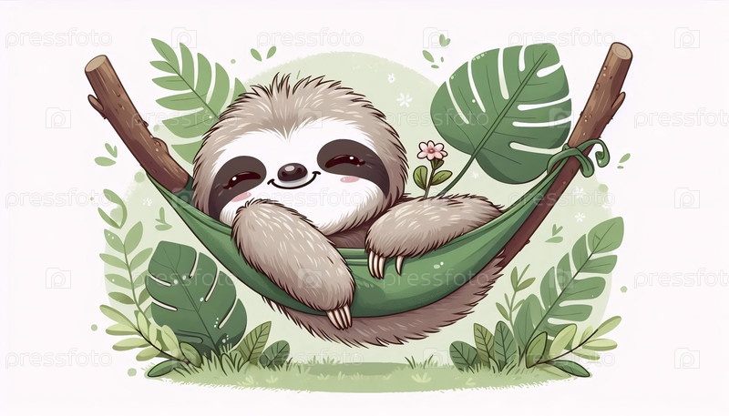 Кавайская сцена ленивца в гамаке, Ai generated image