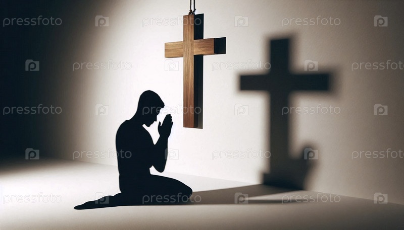Тень человека в молитве, брошенная на стену с крестом, Ай создала изображение