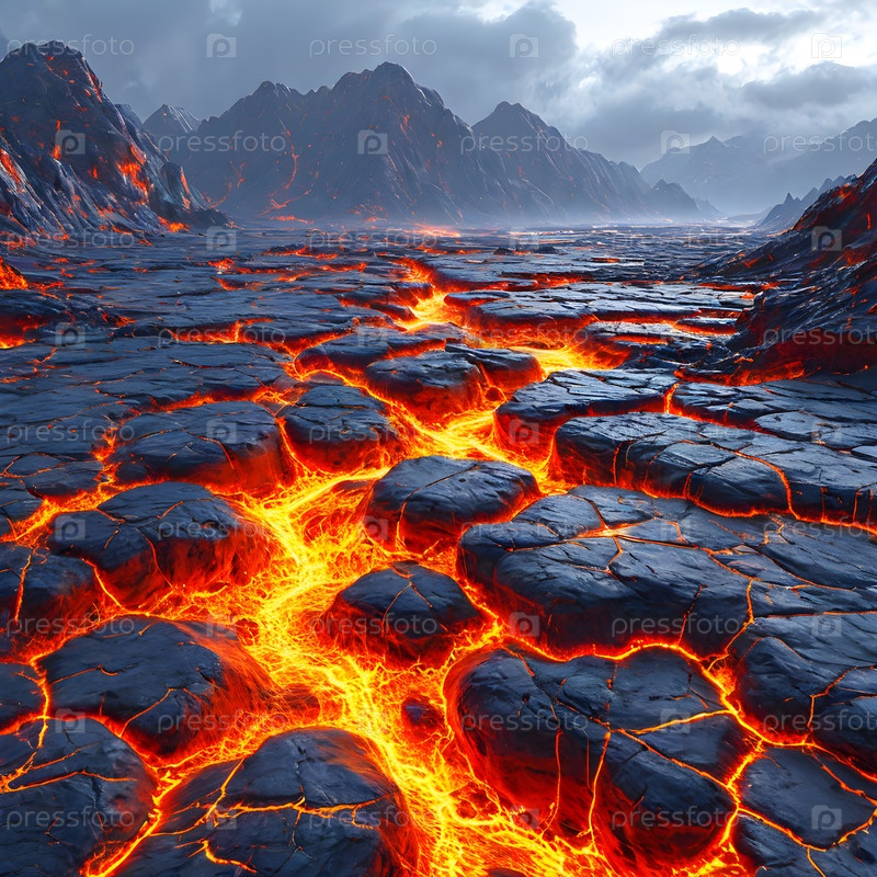 Абстрактная местность со светящимися лавовыми трещинами, изображение создано с помощью Ai