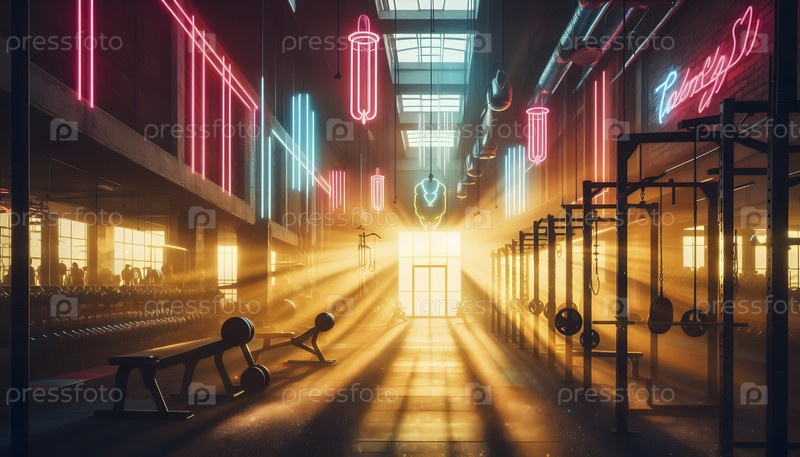Профессиональный интерьер тренажерного зала с оборудованием для тренировок, Ai created image