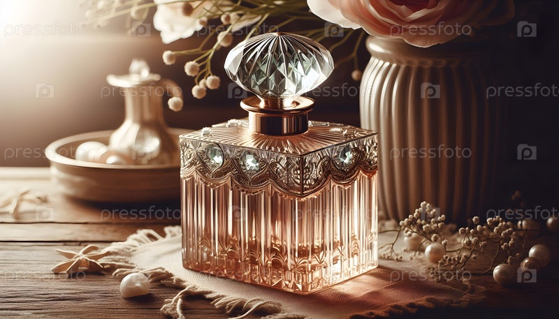 Парфюмерная бутылка с винтажным вдохновением, изображение создано с использованием Ai