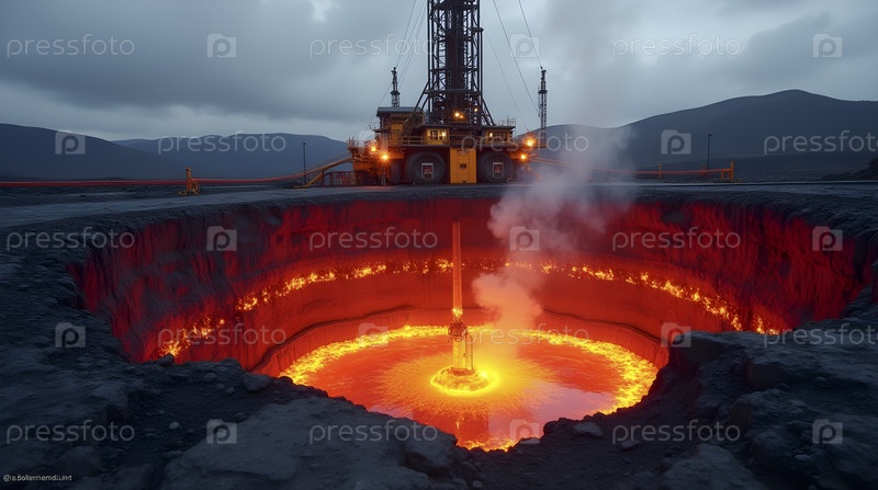 Геотермальная буровая установка в вулканической местности, Ai generated image