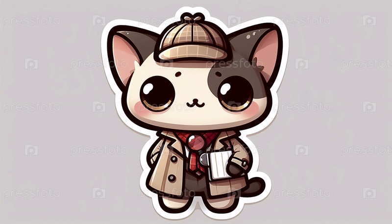 Милый стикер кавайского детектива чиби-кошки, Ai generated image