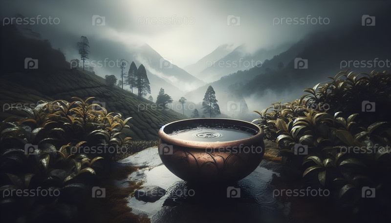 Дождевая вода, собранная в бронзовом сосуде, Ai created image