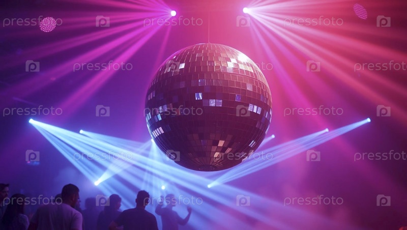 Сцена в ночном клубе с одним гигантским дискотечным шаром, отражающим красочные лазерные лучи во всех направлениях, Ai generated image