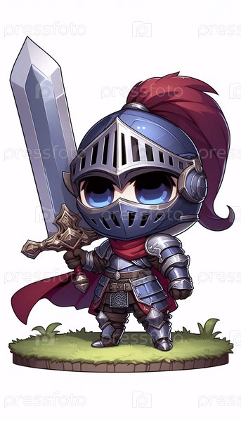 Chibi версия рыцаря фантастической игры, Ai generated image