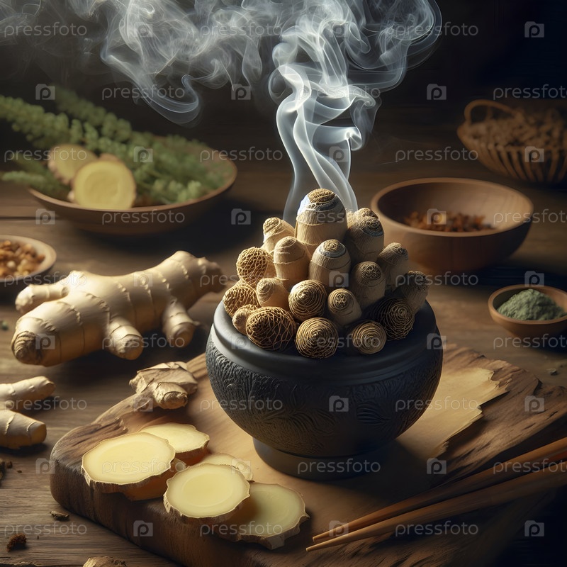 Японское моксибустионное сжигание на кусочках имбиря, Ai created image