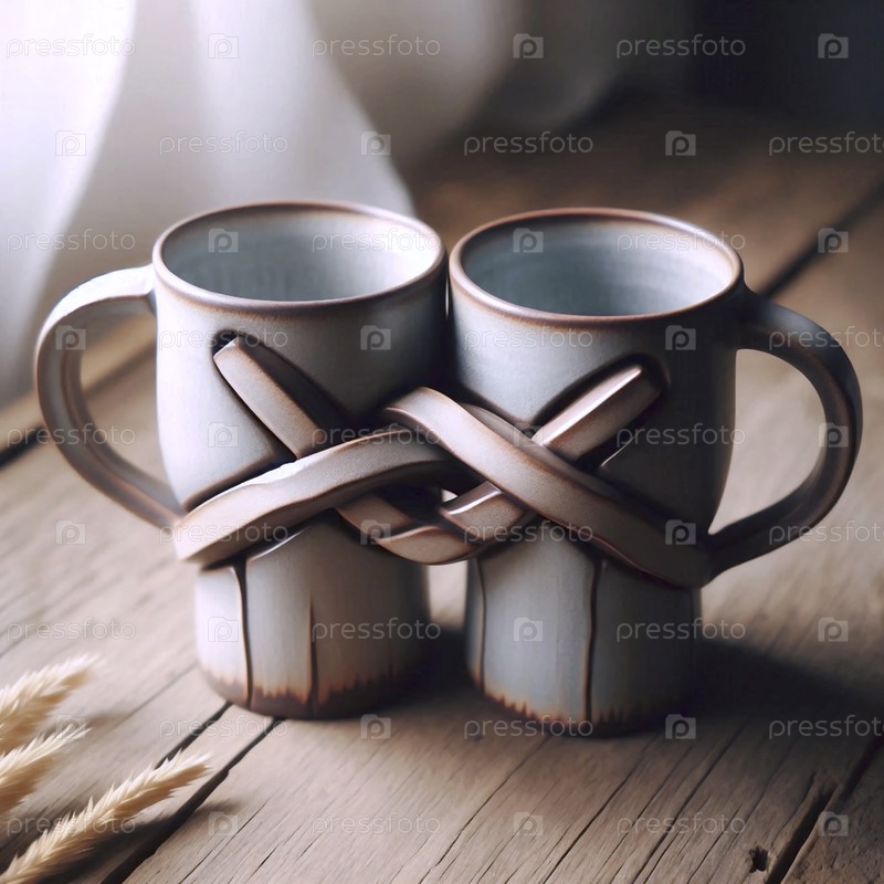 Набор глиняных свадебных чашек с взаимосвязанными перекрестными ручками, Ai generated image