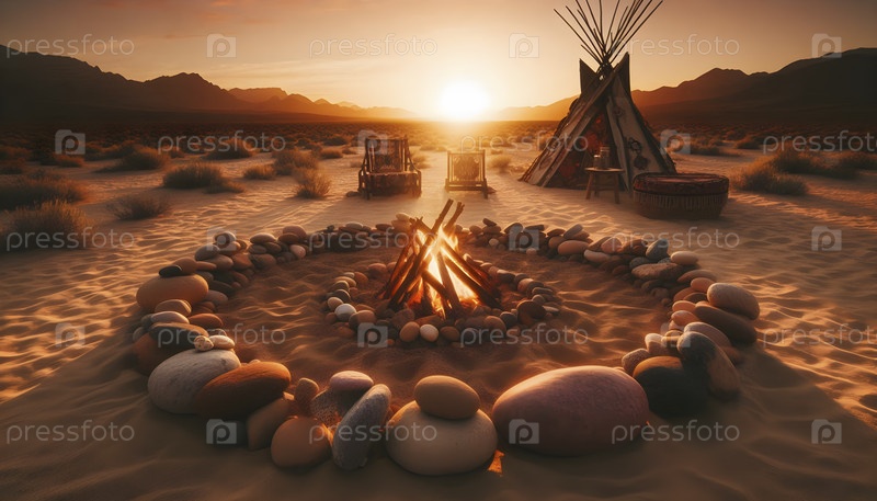 Горячие камни из церемонии потной ложи, расположенные в священном круге, Ai created image