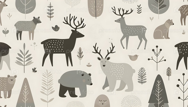 Скандинавские минималистические силуэты животных детская комната обои, Ai created image