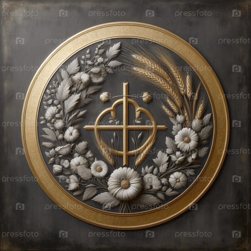 Монограмма Chi Rho в короне из диких цветов, серого и золотого цвета, Ai generated image