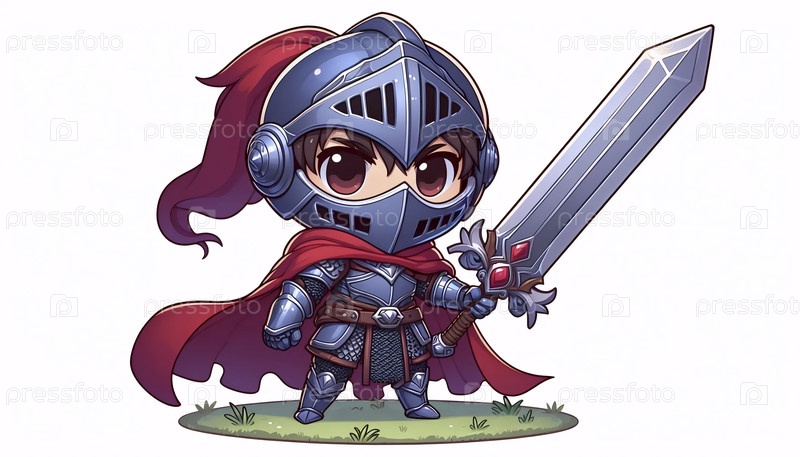 Chibi версия рыцаря фантастической игры, Ai generated image