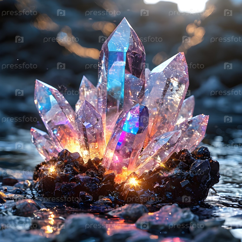 Плавучие кристаллы с преломлением света, изображение создано с использованием Ai