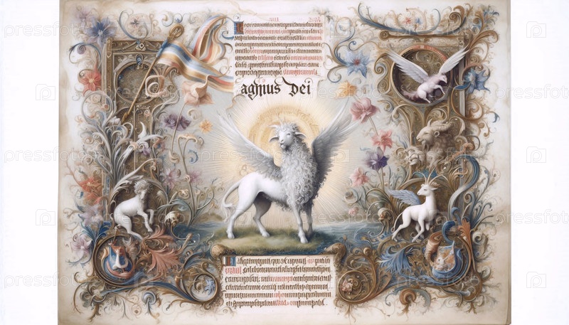 Средневековый рисунок в стиле зоопарка, изображающий Ягненка Божьего (Ai generated image)