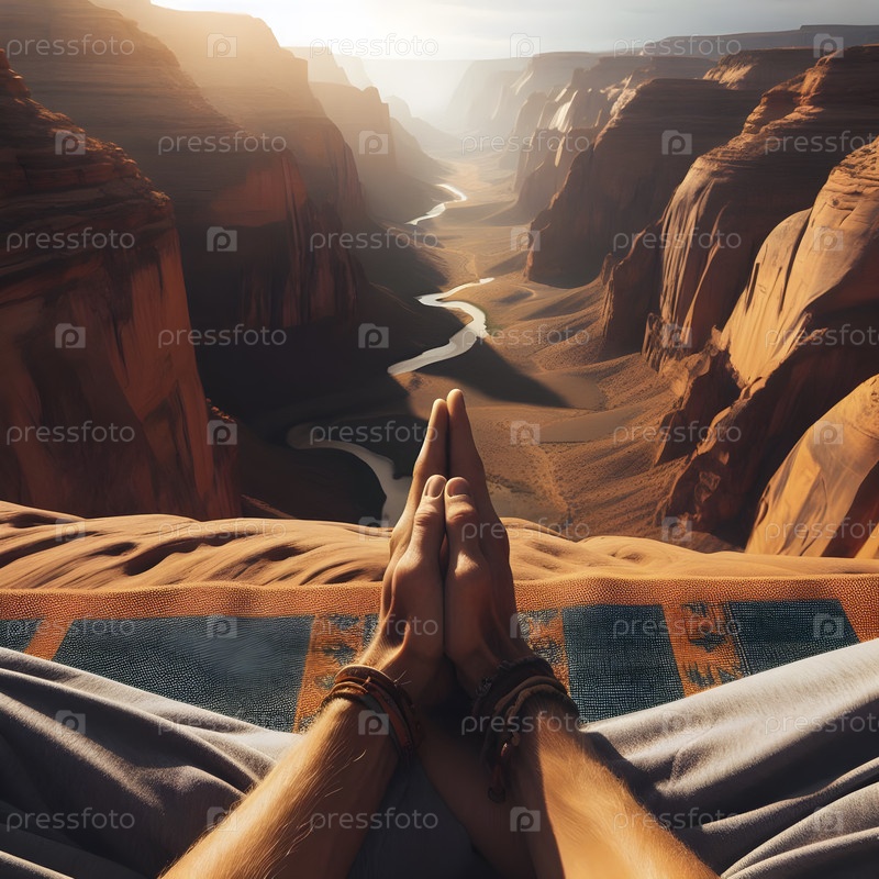 Снимок сверху рук в молитвенном положении на ковре, Ai created image