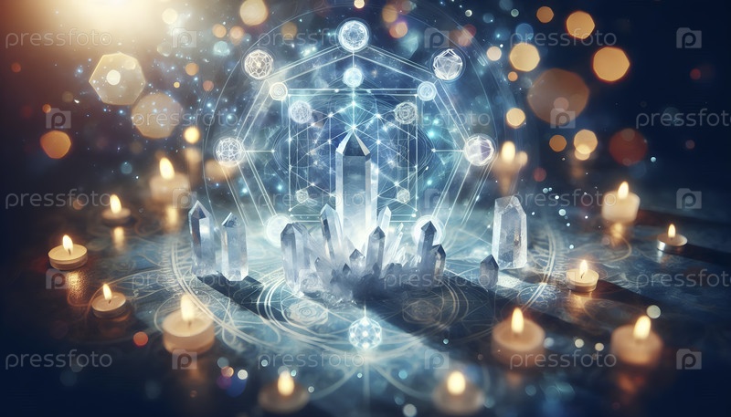 Кварцевая кристаллическая сетка, наложенная на точки чакры, Ai created image