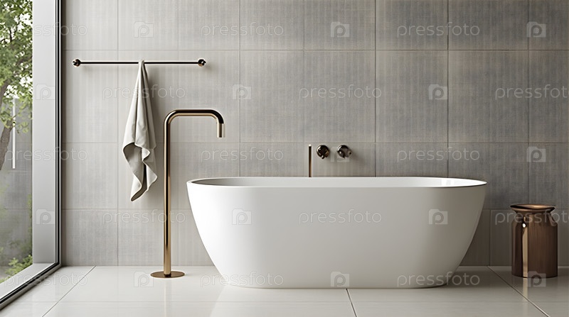 Минималистическая ванная комната со свободно стоящей ванной, изображение создано с помощью Ai