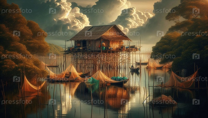 Thai Stilt House, ИИ-генерированное изображение