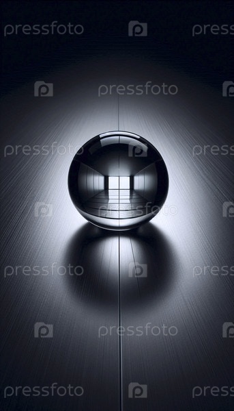 Совершенно сферическая капля воды на черной анодированной металлической поверхности, отражающая искаженную раму окна, Ai создала изображение