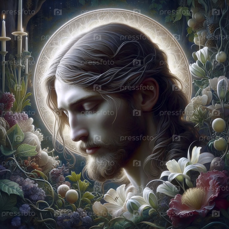Прерафаэльский портрет Христа в Гефсимании, Ai generated image