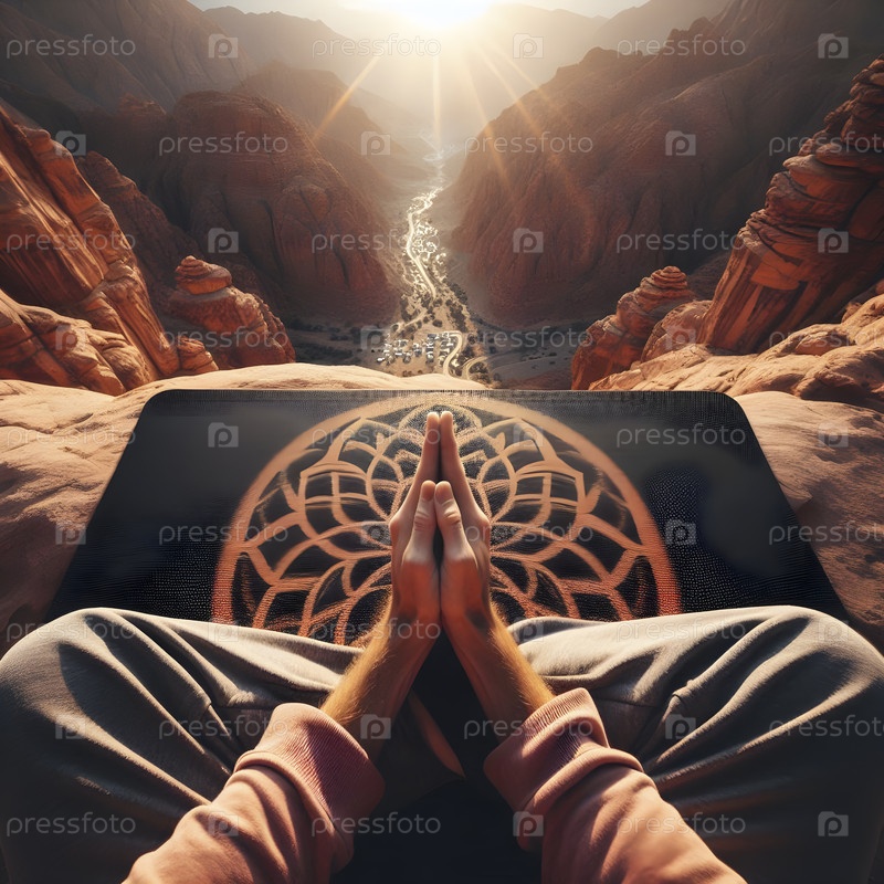 Снимок сверху рук в молитвенном положении на ковре, Ai created image