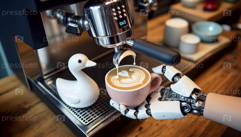 Барриста робот-рука с точностью литье латте искусство сердце, Ai created image