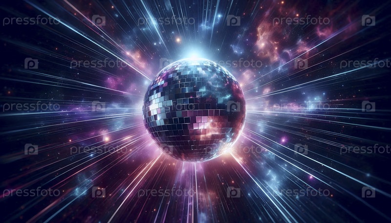 Сцена в ночном клубе с одним гигантским дискотечным шаром, отражающим красочные лазерные лучи во всех направлениях, Ai generated image