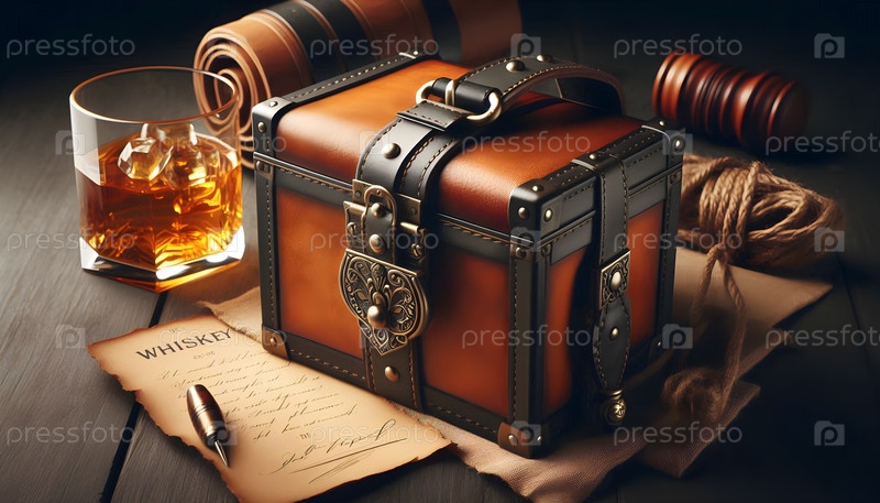 Подарочная коробка с виски, изображение создано AI