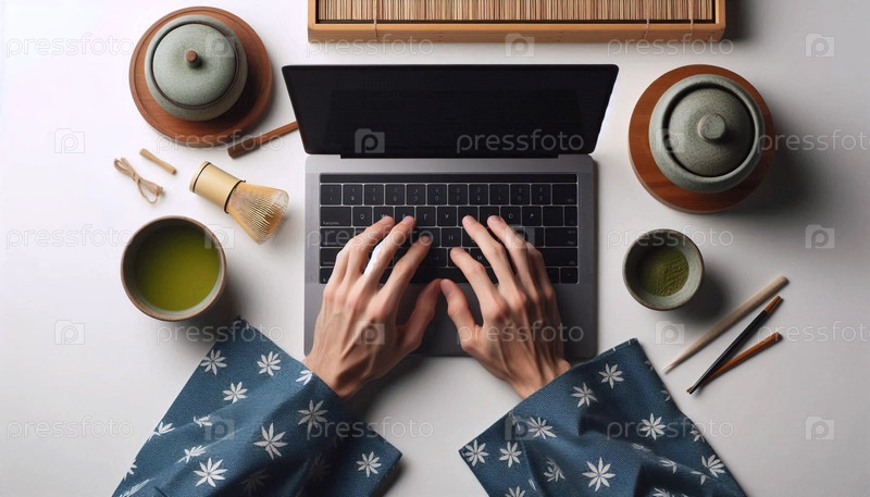 Руки, печатающие на клавиатуре в творческой атмосфере рабочего пространства, Ai generated image