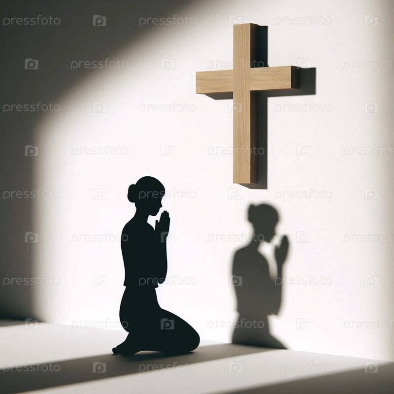 Тень человека в молитве, брошенная на стену с крестом, Ай создала изображение