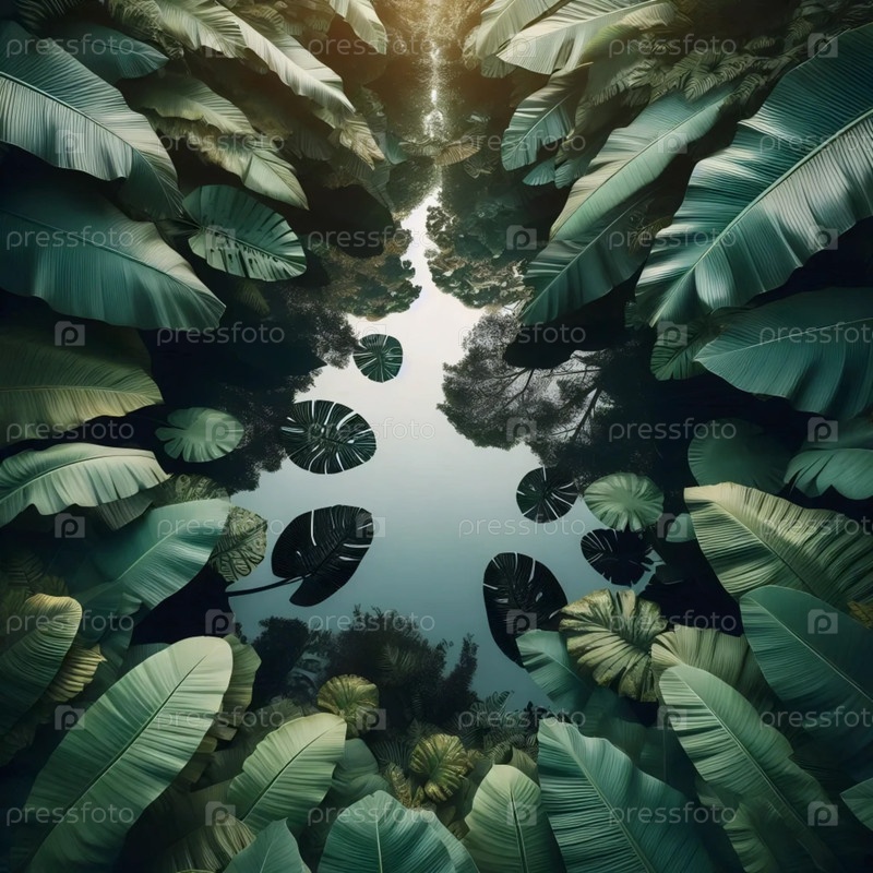 Отражения тропических листьев, Ai generated image