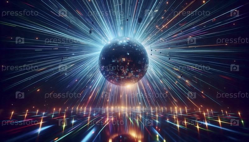 Сцена в ночном клубе с одним гигантским дискотечным шаром, отражающим красочные лазерные лучи во всех направлениях, Ai generated image