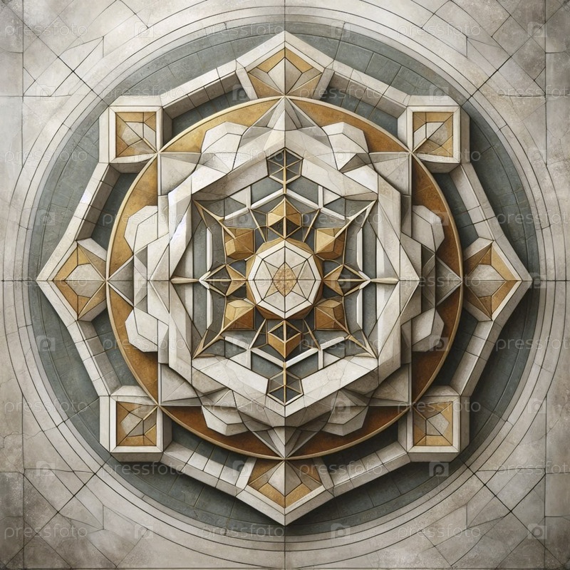 Золотой крест внутри геометрической мандалы, палитра старого мира, Ai generated image
