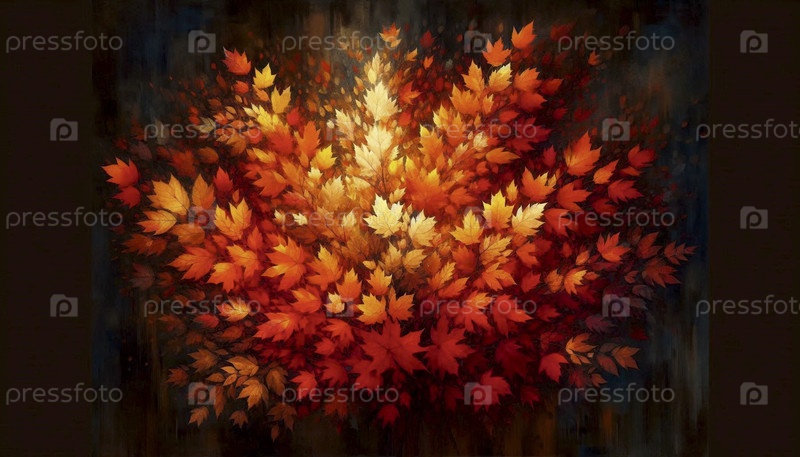 Горящий куст изображен осенними листьями, Ai generated image