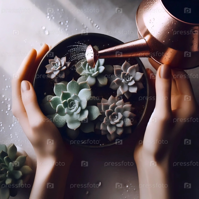 Руки, поливающие суккуленты, Ai generated image
