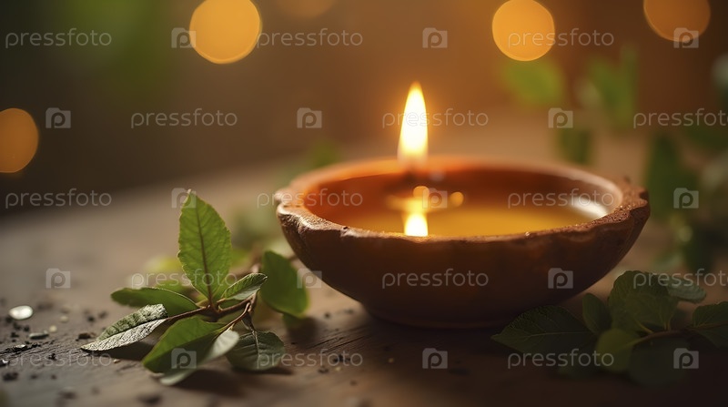 Золотая гхи в ручной керамической diya, AI generated image