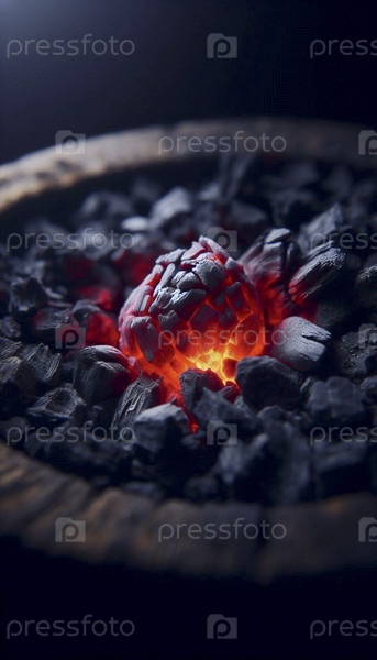 Один уголь светит в темной печи, Ai generated image