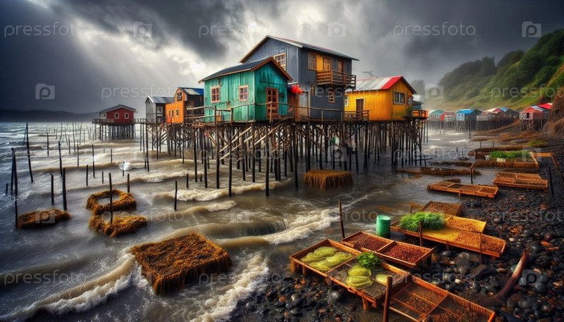 Чилийские дома Палафито, создано искусственным интеллектом изображение