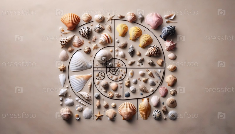 The Fibonacci в коллекции морских раковин, Ai generated image