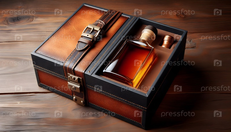 Подарочная коробка с виски, изображение создано AI