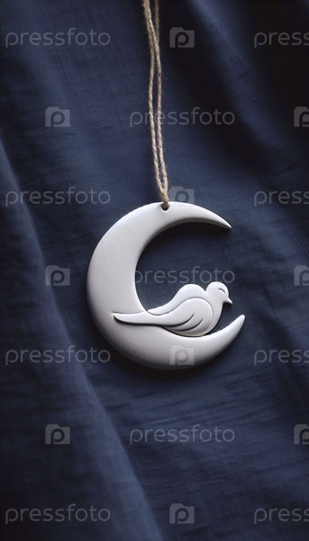 Полумесяц с силуэтом спящего голубя, Ai generated image