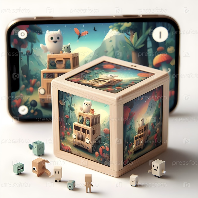 Простой кубик из деревянной игрушки, Ai created image